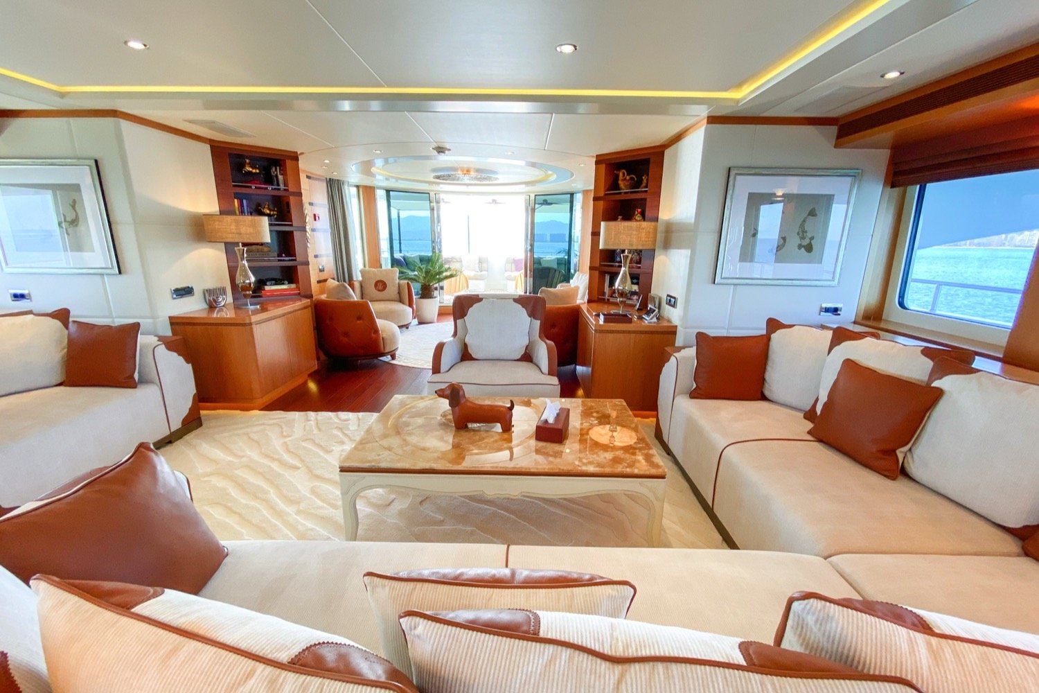 Forward, on the starboard side leads on into the owner's suite, which features a full beam bedroom with an adjoining his and hers bathroom ensuites. A further eight guests can be accommodated in four cabins positioned on the ...