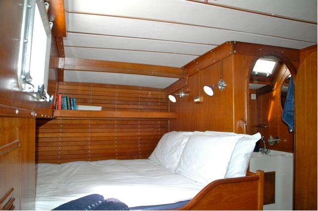 Her cabin configuration consists of 2 twin cabins (two with single bunks, with top bunks that can be converted to a double upon request), a master cabin comprising of a queen size bed and a single bed, an additional single berth in saloon and a forepeak double berth. There are two heads, one fwd and one aft.