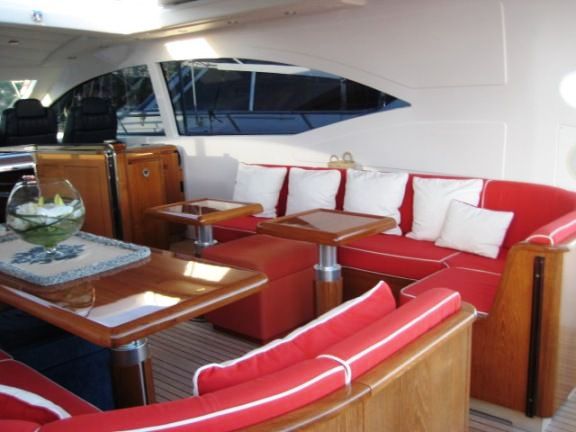 Luxury motor yacht LORELEI (Ex SED) has large sunbathing areas with comfortable bright red cushions astern and forward, a spacious cockpit with large L-shaped settee, a dining ...