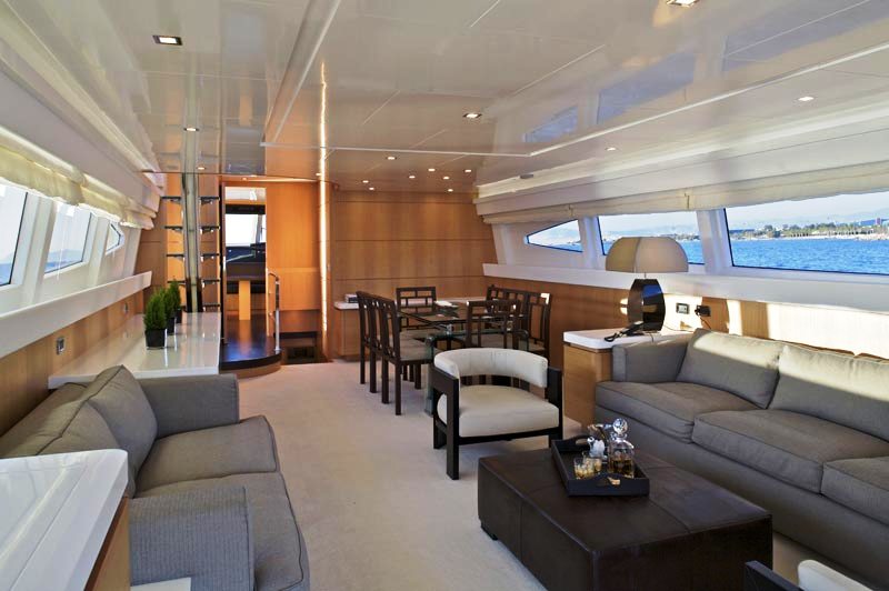 Motor yacht HABANO’s salon features beautiful interior design including the work of “Armani” and “Fendi”. To port there is a “POP-UP” plasma TV for your viewing pleasure and a 2-3 person sky grey sofa.