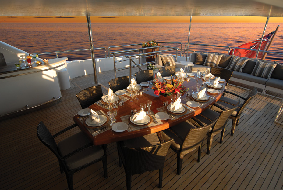 She features a contemporary interior with a main salon and dining area on the main deck as well as an upper salon with great views. Her large windows provide brightly lit interior spaces, which create a comfortable and calm ambience. The interior is tastefully furnished and boasts some beautiful elements of wood and lavish fabrics.