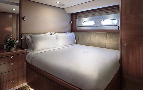 The large master cabin is located aft and is full width of the beam. There is a VIP Guest Queen Stateroom and an additional cabin that has Twin beds that converts to Queen sized beds making her ideal for both friends and family charters alike.
