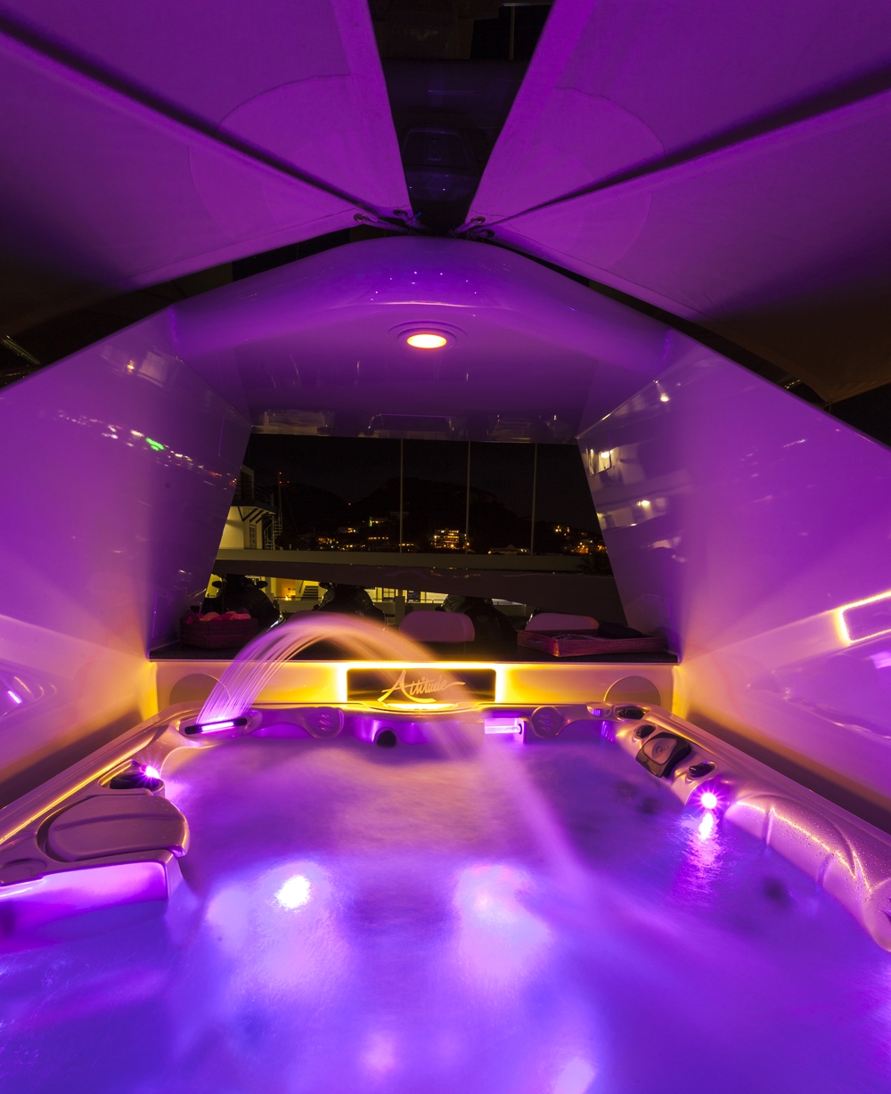 NOTABLE FEATURES for ATTITUDE: Large sundeck with sunpads, Jacuzzi and wet bar ~ Two alfresco dining ...