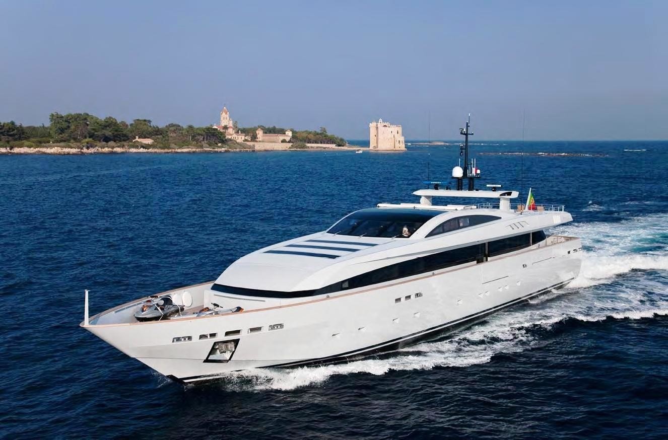FAN TOO has a cruising speed of 25 knots and a top speed of 28 knots with engine propulsion of over 7,000 hp. She features reverse cycle air conditioning, 2 x 80 kW generators, 2 x 6000 L/day water makers, Naiad system Stabiliser ...
