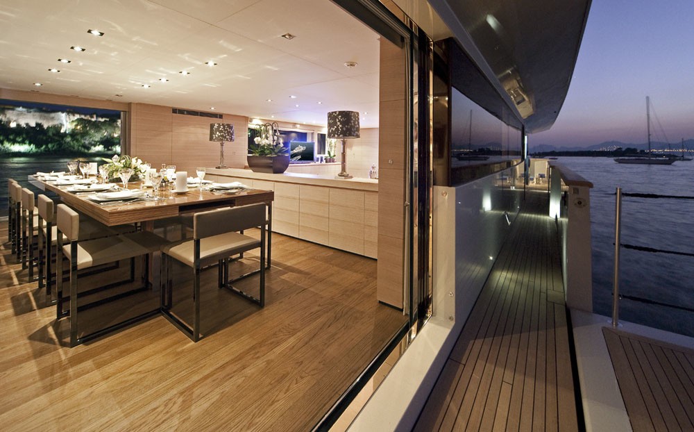 Motor yacht FAN TOO has a modern interior that provides a calm and spacious oasis.