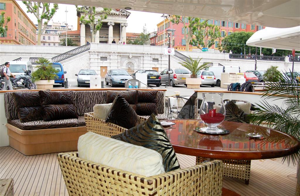 Charter yacht SPARKLING has a very usable aft deck with the possibility to dine alfresco or lounge on the fixed couch at the aft. There is also access to the yachts swim platform from the aft deck.