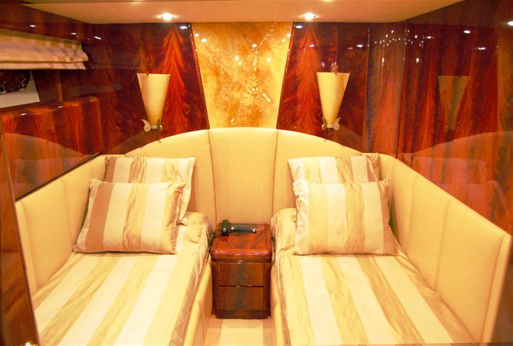 She has a fun interior with a separate salon and dining area while accommodating 8 guests in 4 cabins below decks including a Master Cabin, a VIP cabin, a Double guest cabin and a Twin guest cabin.