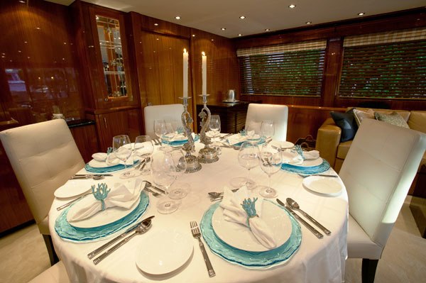 Further forward is the adjoining dining area for up to 8 guests. M/Y SHOW BOAT is fully air conditioned throughout.