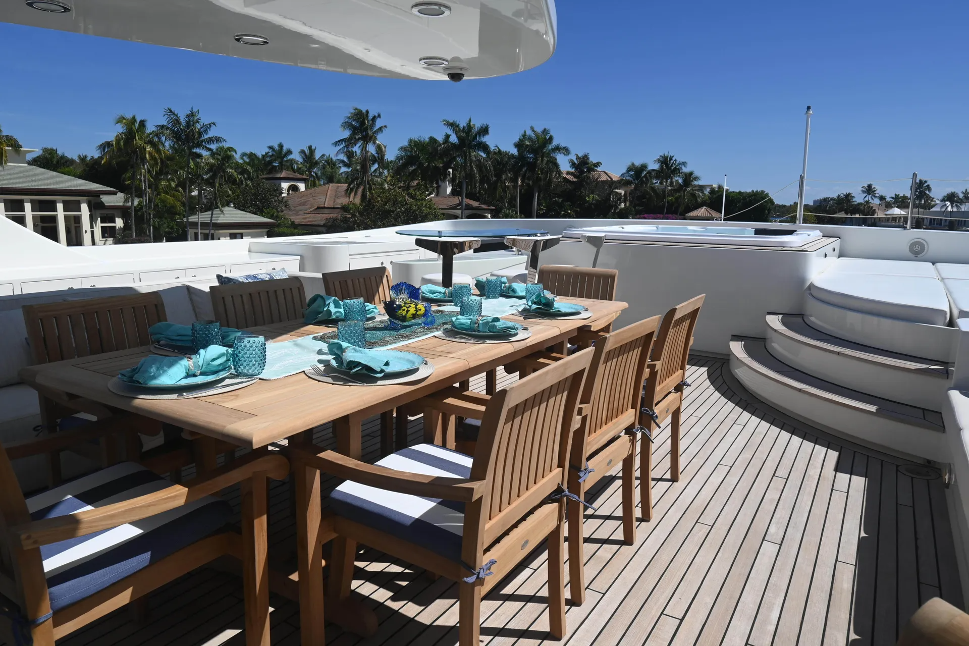 This stunning vessel measures 38.71 m (127') and offers three decks with accommodation for up to 12 guests in 6 cabins, who are catered for by a crew of seven.