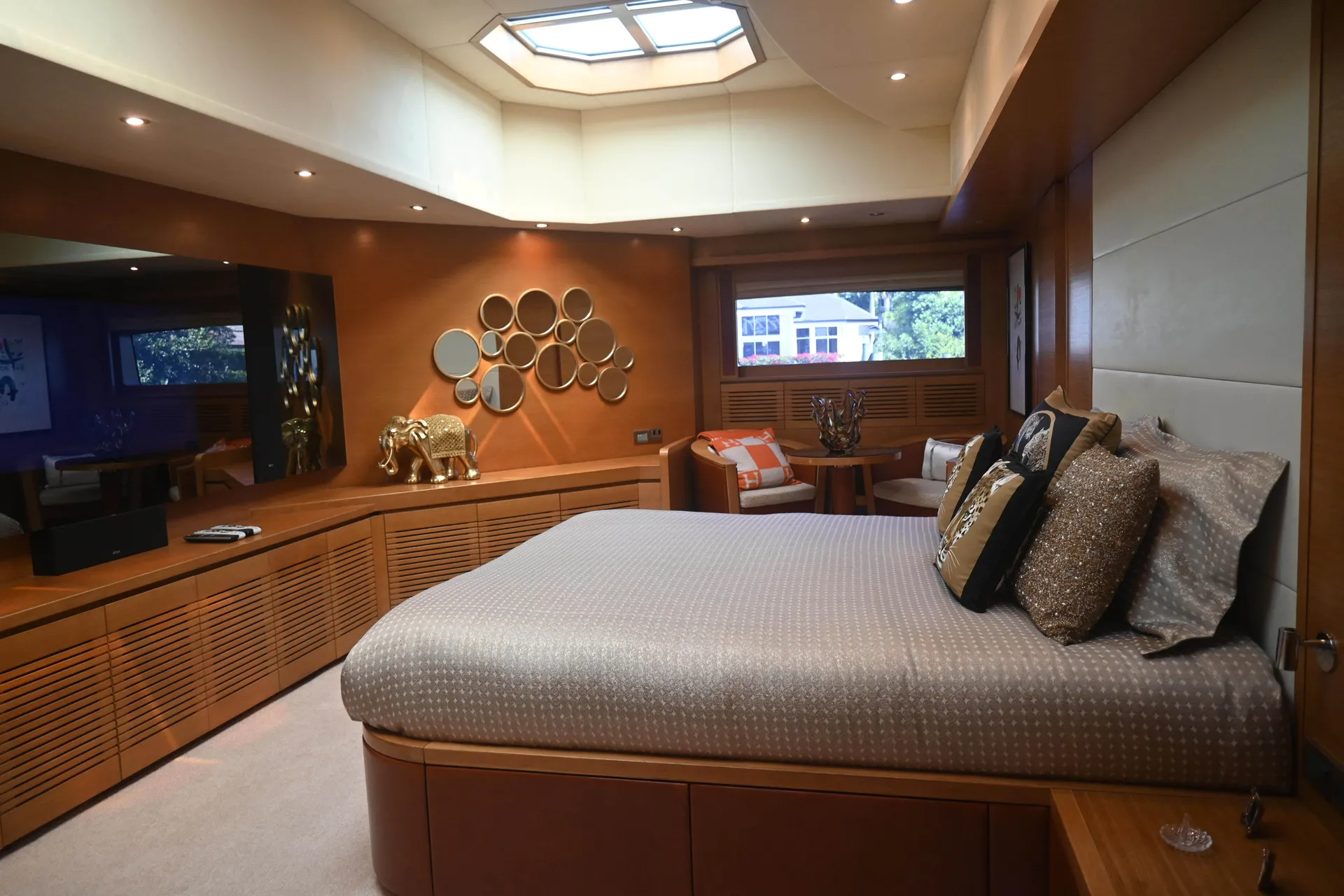This stunning vessel measures 38.71 m (127') and offers three decks with accommodation for up to 12 guests in 6 cabins, who are catered for by a crew of seven.