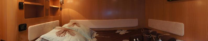 Located on the Starboard side aft is a third guest cabin featuring a queen size bed (approx. 7ft 8 inch x 6.3ft). This bed can be converted into twins. The fourth guest cabin which features the smallest square footage located on the starboard side forward features a queen size bed (approx.