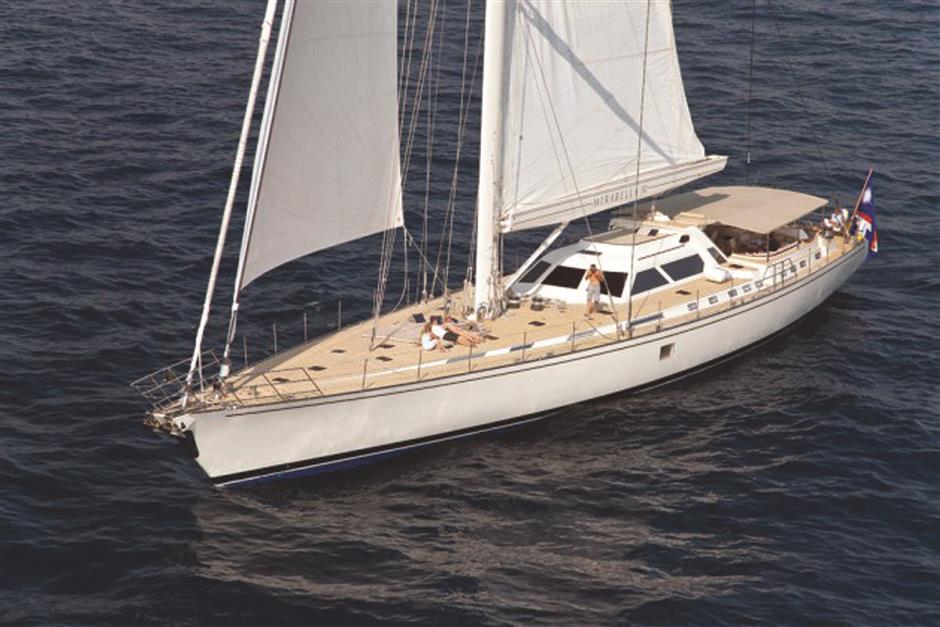 Sailing yacht Mirabella III was designed by Bruce Farr and can accommodate ten guests, with a professional crew of 7.
