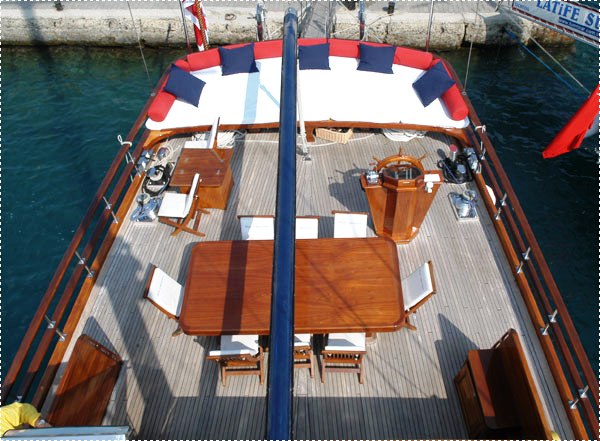 Gulet Blue Capricorn has a spacious saloon on the main deck has large windows perfect for viewing the remarkable Turkish coast. Dining facilities and a fully equipped bar are also located in the Salon on the main deck.