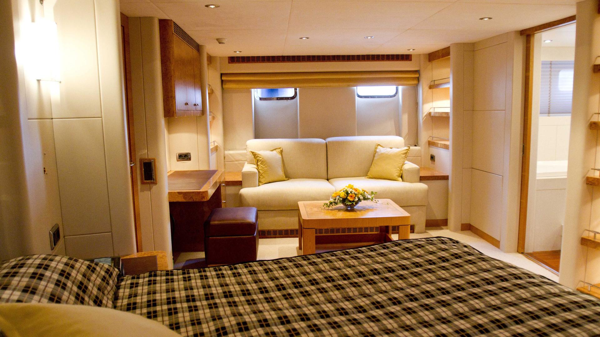 Accommodation is offered for up to 10-12 guests in 5 cabins located on the lower deck.