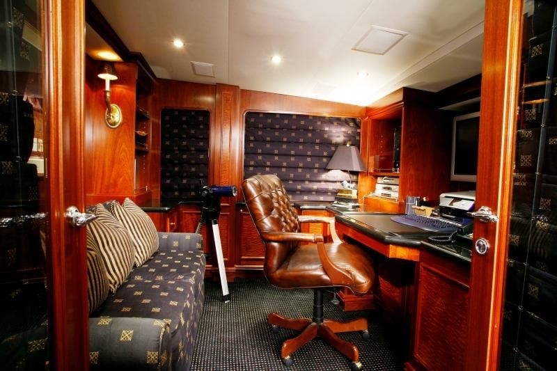 The office area located forward on the main deck is sound-proofed for privacy and features a couch, built-in desk, Aquos Sharp 29” plasma TV, DVD and CD changer home theatre. The yachts’ Galley also boasts a Fujitsu 22” ...