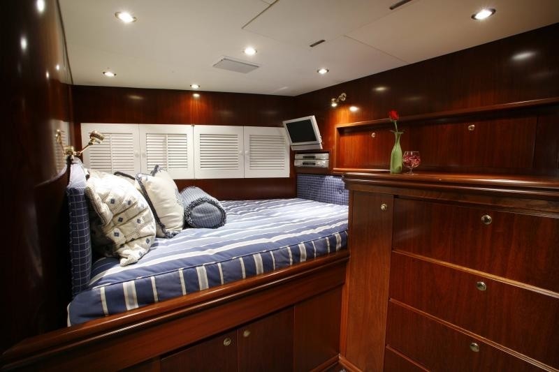 The yachts’ Galley also boasts a Fujitsu 22” plasma TV and a built-in espresso machine and casual bar-style seating.