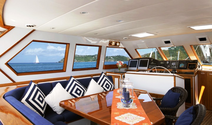 Sailing yacht CALDERA is able to accommodate up to 8 guests in 4 spacious ensuite staterooms. Her Master Stateroom features a King size bed, bath, shower and sauna. There are two staterooms with Queen size beds and one stateroom with single upper and double lower beds.
