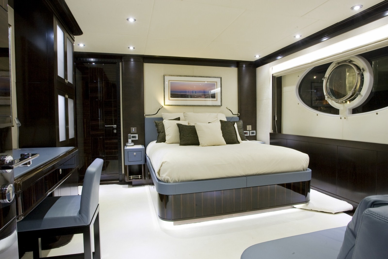Motor yacht Grenadines III can sleep 10 guests in 5 beautifully furnished cabins with marble ensuites. Her full beam Master cabin is located on the main deck with a walk in wardrobe area, and an ensuite with a Spa Pool and step in shower plus his and her basins.