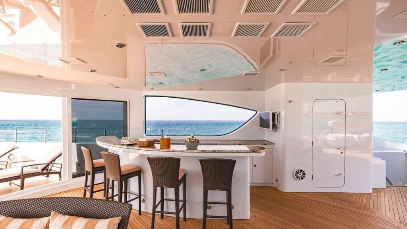 The yachts exterior living is exceptionally spacious and laid over 3 decks.