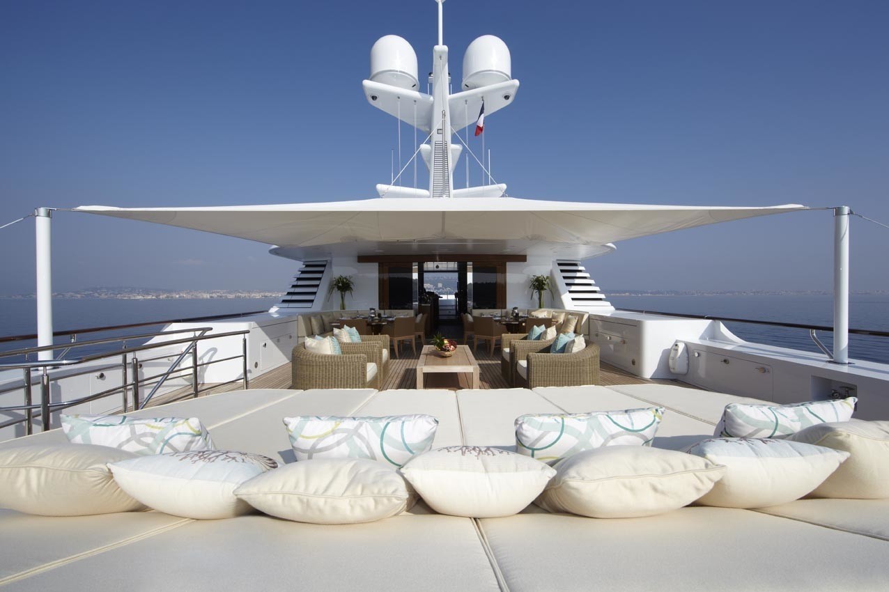 Sunbeds With Surrounding Cushions On Yacht LADY BRITT