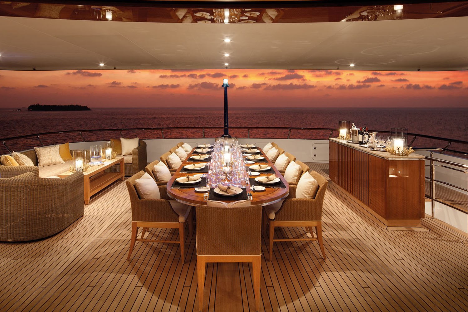 Both indoor and outdoor living spaces have been designed for socializing and entertaining. The guests will enjoy watching their favorite movies from the onboard collection, with a choice of indoor and outdoor cinemas.