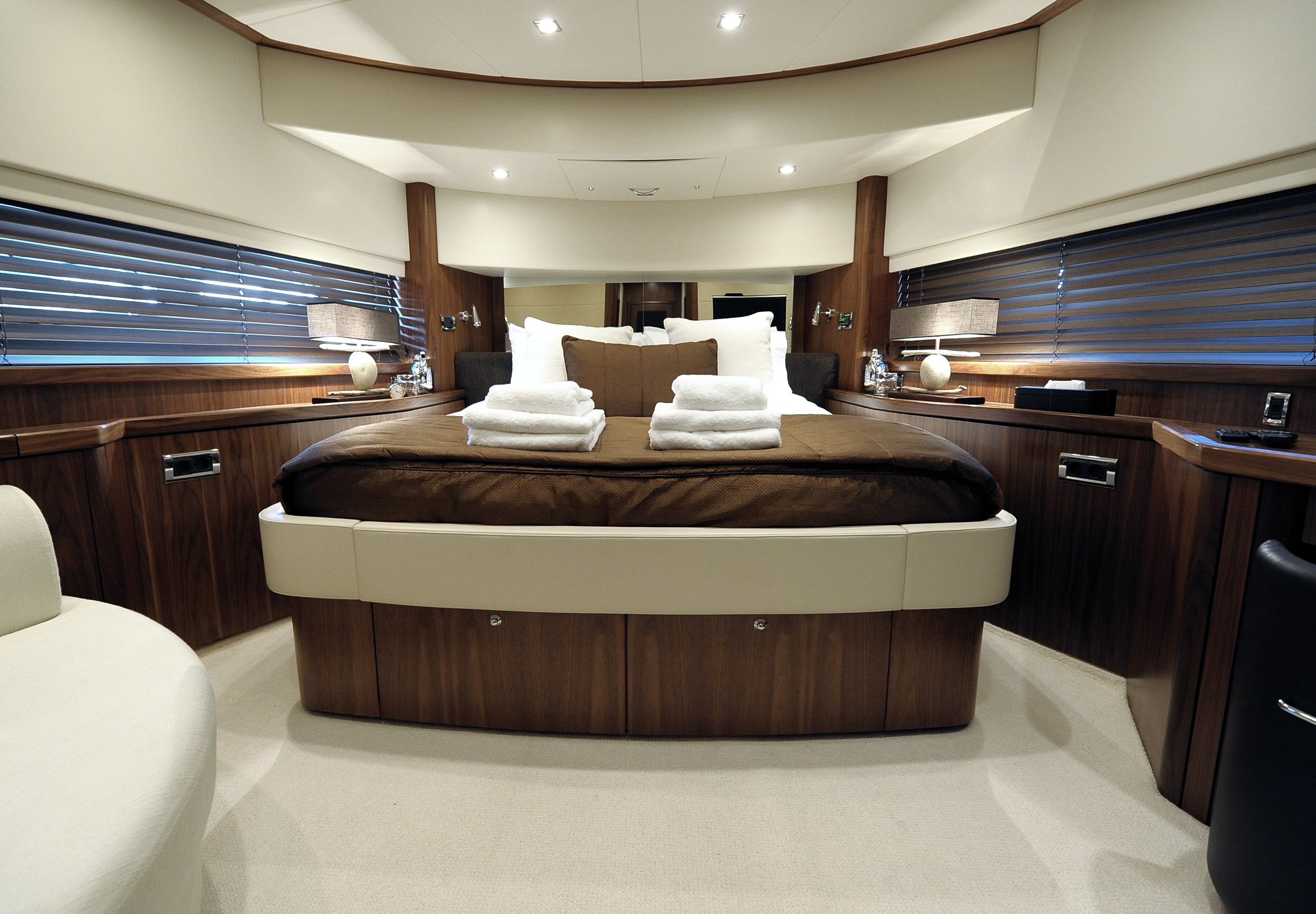 Sunseeker motor yacht DONIZETTI is able to sleep up to 10 guests. On the lower level, there is a large master cabin with king size bed and walk in wardrobe and a generous shower room. The VIP cabin is located forward with a large bed, walk in wardrobe and marble bathroom. There are two twin cabins with pullman berths, best suited for children.