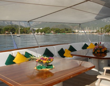 Covered Eating/dining Furniture: Yacht LADYSHIP's Top Deck Captured