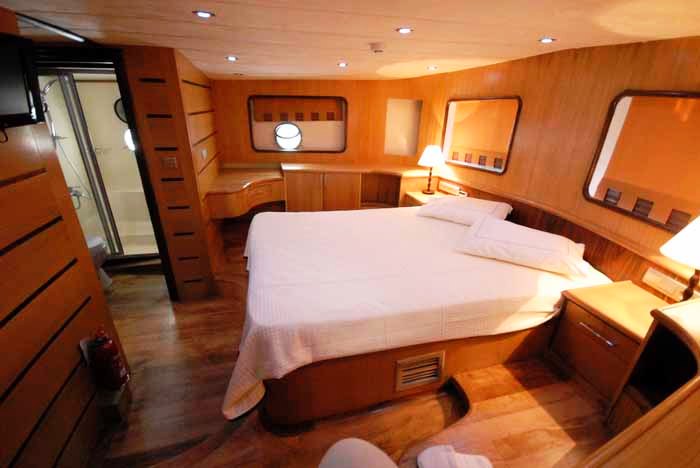 She was built in 2008 and boasts four spacious cabins, each with a private ensuite bathroom and entertainment facilities.
