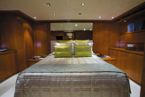 On deck, her layout is very functional with alfresco dining on both the main aft deck and on the upper deck where there is also a bar with stools, sunpads and several sun loungers. A further sunning area is located forward of the bridge.