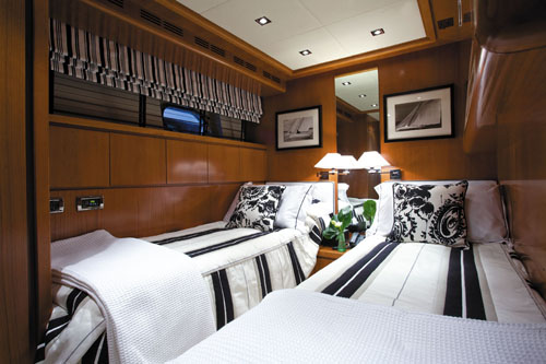 The Master stateroom is situated on the main deck and two double cabins and two twins each with an additional Pullman bunk are on the lower deck. Motor Yacht HERO is equipped with a BSC 7 m RIB tender with a Yamaha 225 Hp engine ...