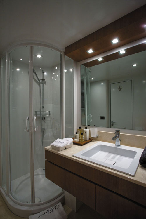 Luxury Motor Yacht HERO offers accommodation for ten guests in five staterooms, each with private ensuite facilities.