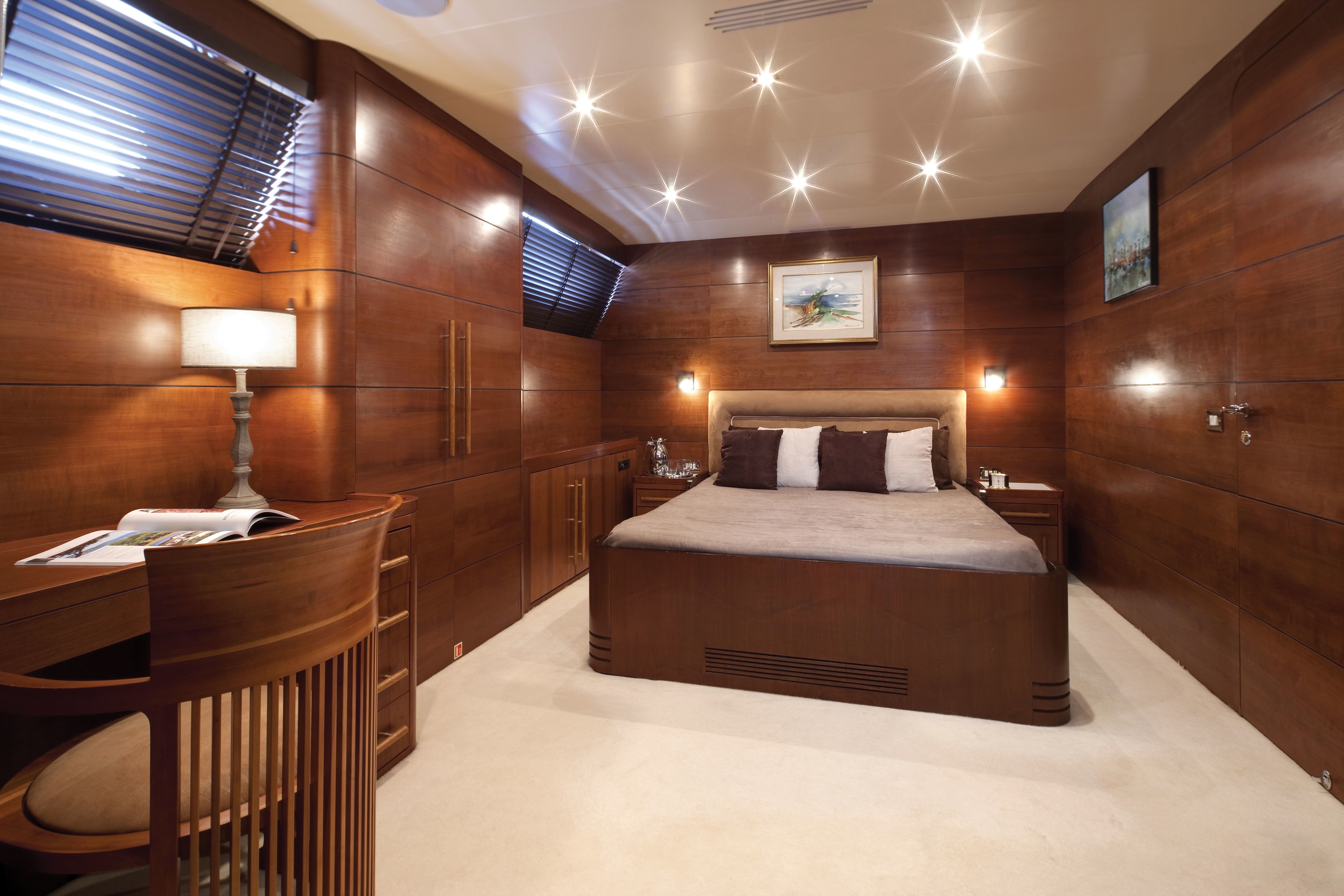 Studio Peterlin Ltd developed naval architecture and exterior profile, while Alberto Pinto created her updated interior styling. Fiorente provides accommodation for up to 10 guests in five well-appointed cabins.