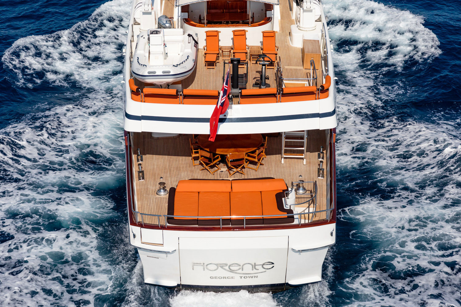 For outside entertainment, FIORENTE offers alfresco dining for 12 on the main aft deck and additional dining for six on the sundeck.