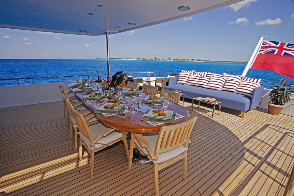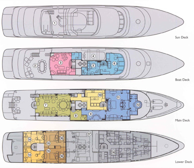 The Spa Pool was brought forward creating a generous area aft with sunbeds to relax and enjoy the panoramic views, plus alfresco dining, relaxing and entertaining areas. In addition, there was also a gymnasium added.