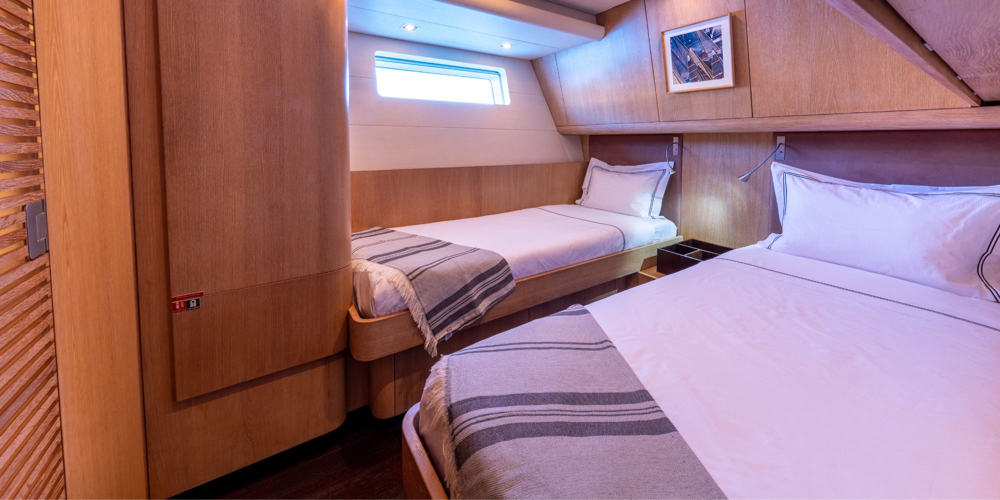 In line with the Swan tradition, Frers has combined a graceful exterior with spacious and elegant accommodation for 6 guests in 3 cabins, making the sailing yacht YCH2 ideal for extended cruising. She has a crew of 4.