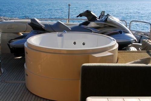 The aft deck of luxury charter yacht CHOCO offers an area for al fresco dining, and there is also a relaxing area forward for enjoying cocktails and hors d'oeuvres. The yachts flybridge boasts areas for sunbathing, enjoying a Spa Pool and dining while taking in the breathtaking views.