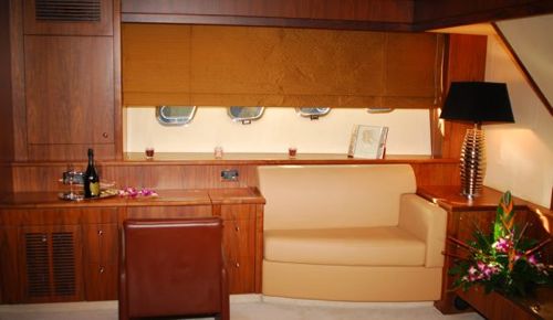 Sunseeker yacht CHOCO features a spacious saloon with an adjoining dining area on the main deck.