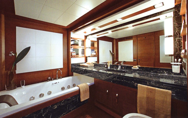 Yacht Tropicana’s accommodation are is located on the lower level and includes a master cabin with king size bed, with his and hers bathroom, a VIP cabin with a queen size bed and two twin cabins, all with ensuite facilities.