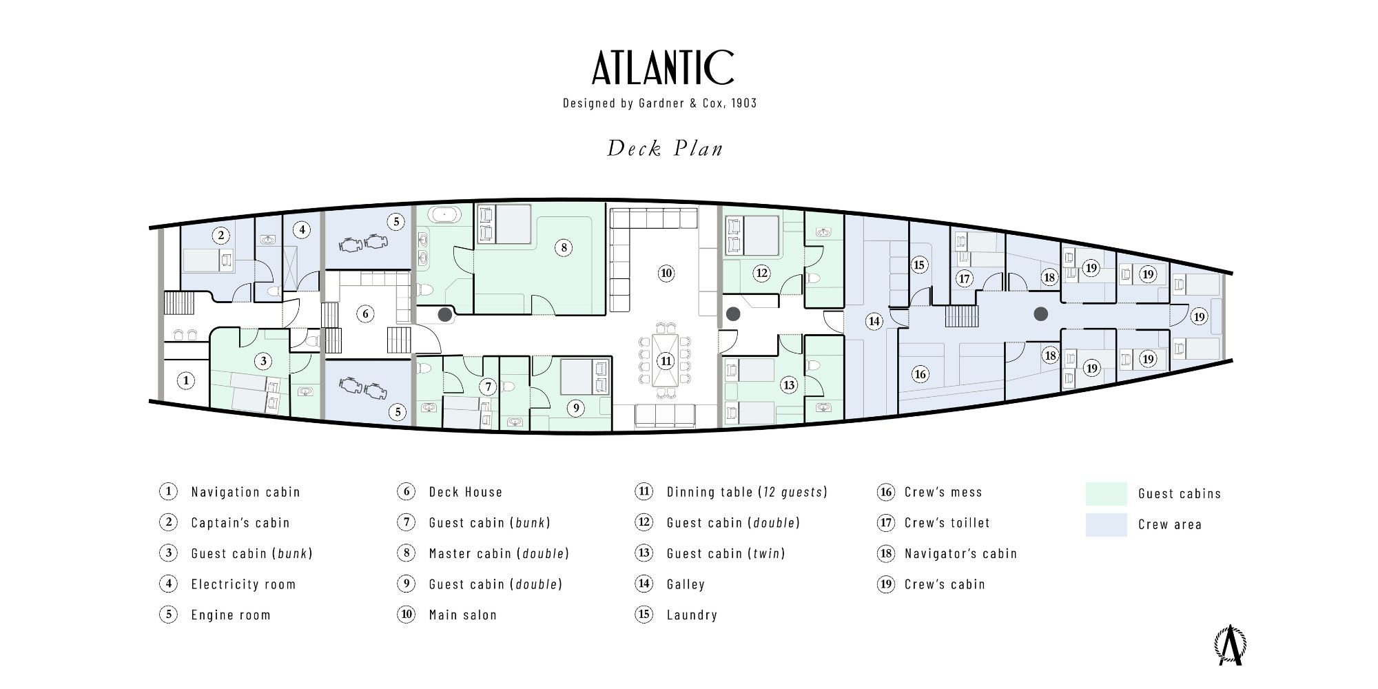 The Dutch Van der Graaf yard first launched ATLANTIC in 2008. Following her launch, she underwent an extensive programme of fitting out. 2009 saw the assembly of her three masts, with a height of 45 metres, supporting 1700m² of sails.