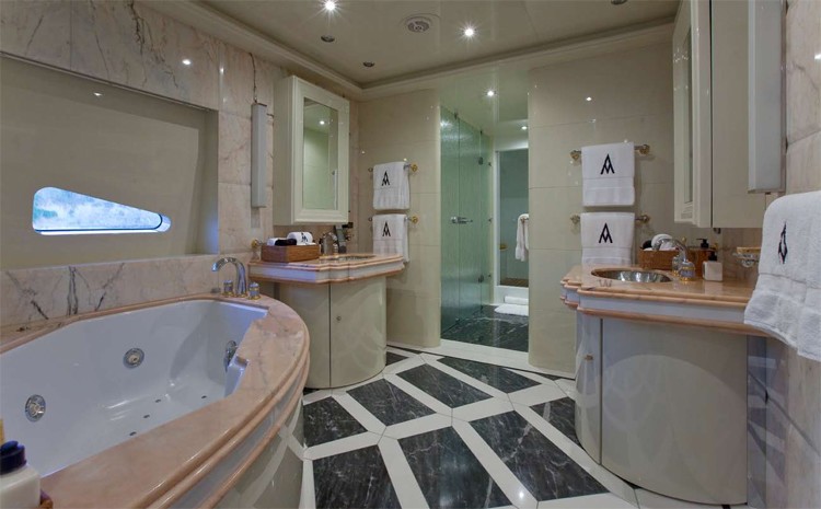 The beautiful Master suite is located on the main deck and comprises of a private lounge and additional stateroom. The Master cabin has His and hers facilities with dressing areas and generous wardrobe space. The VIP stateroom is located on the upper deck and is equipped with generous en-suite bathroom and dressing room.