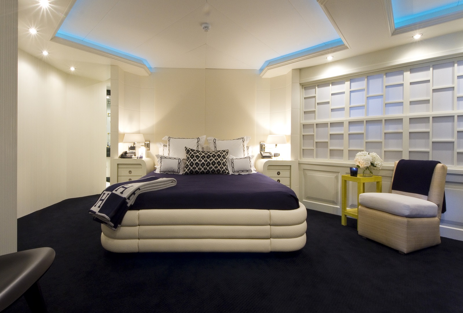 The Master cabin has His and hers facilities with dressing areas and generous wardrobe space. The VIP stateroom is located on the upper deck and is equipped with generous en-suite bathroom and dressing room. There is also a Staff twin cabin on the upper deck.