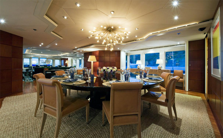 Her exterior is equally impressive with a huge sun deck with a areas to dine for 16 guests, sheltered by sculpted sail awnings, soak in the Spa Pool or sunbathe.
