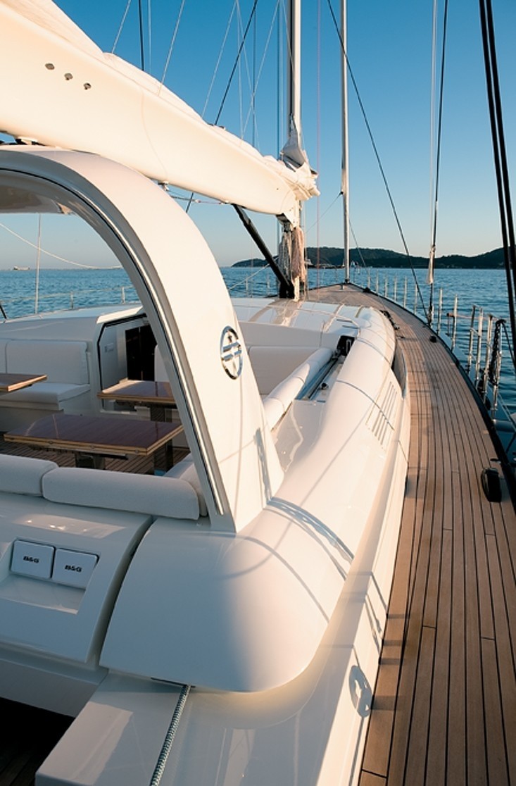 38m S/Y P2 features a comfortable and spacious lay-out which was inspired by the lightness of the hull and rig resulting in a design in which the furniture appears to be weightlessly suspended in the air.