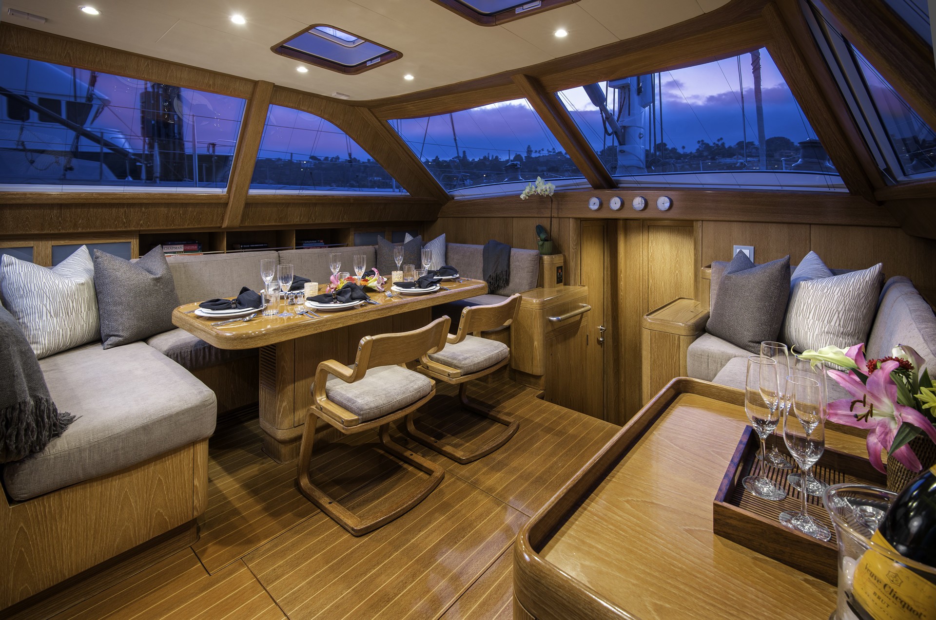 The cabin located to port offers two single beds and the forward port cabin offers a full sized berth and Pullman. There is a very small fourth cabin suitable for a child. All of the staterooms have a private, ensuite bathroom and offer the finest linen sheets and down pillows as well as air conditioning.