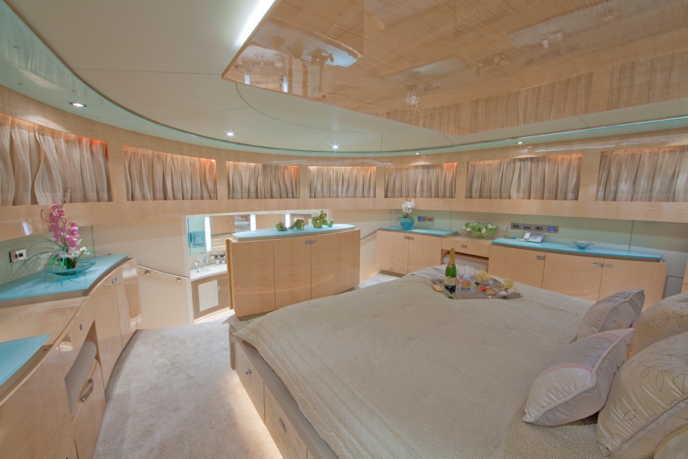 Yacht INCEPTION (ex LORAX, DIAMOND GIRL) is a 31.39 m (103') luxury motor yacht built by Johnson in 2008. She features naval architecture by Dixon Yacht Design with interior design by Trevor James Design & Studio V. Yacht INCEPTION features sweeping curvilinear glass that adds boldness to the bright white of her stacked decks.