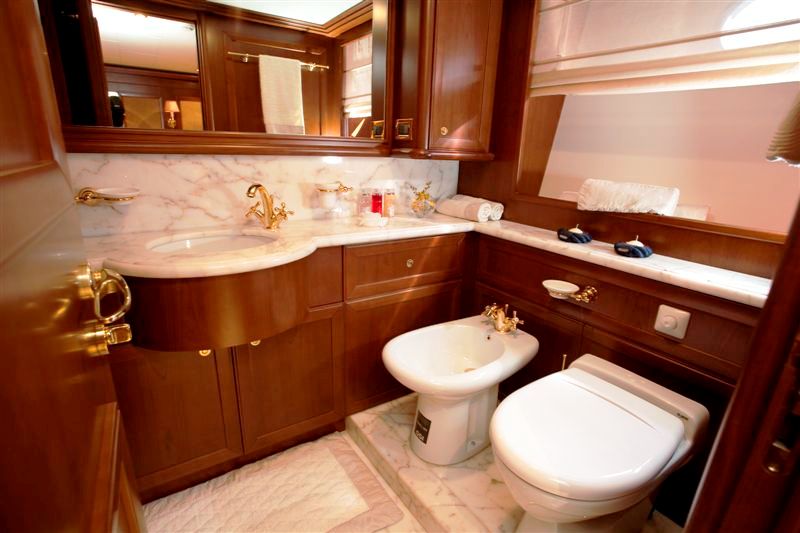 Her 4 cabins located on the lower deck consist of a Master cabin with a king size bed, dresser, office area, vanity and safe plus an ensuite bathroom with double sinks. There is a VIP double cabin with a queen size bed and dresser with an ensuite bathroom and two twin cabins that are convertible into double cabins.