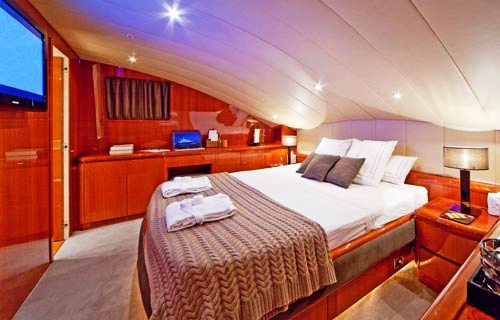 The Falcon 100 motor yacht SYNERGY is able to accommodate up to 10 guests in 5 cabins including an Owner’s Cabin located on the main deck forward with King Size Bed and ensuite Shower-room. The remaining cabins are located on ...