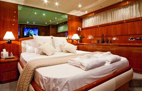 The Falcon 100 motor yacht SYNERGY is able to accommodate up to 10 guests in 5 cabins including an Owner’s Cabin located on the main deck forward with King Size Bed and ensuite Shower-room. The remaining cabins are located on ...