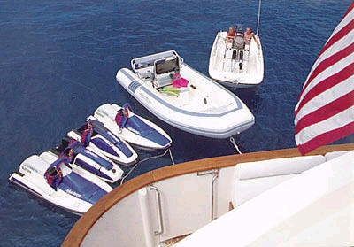 South Pacific luxury motor yacht Huntress provides charterers with the following amenities: As 18ft (4.7m) Novurania with 130 hp outboard and a 17ft (5.2m) Boston Whaler tender with 90hp outboard. She also boasts 2 2man ...