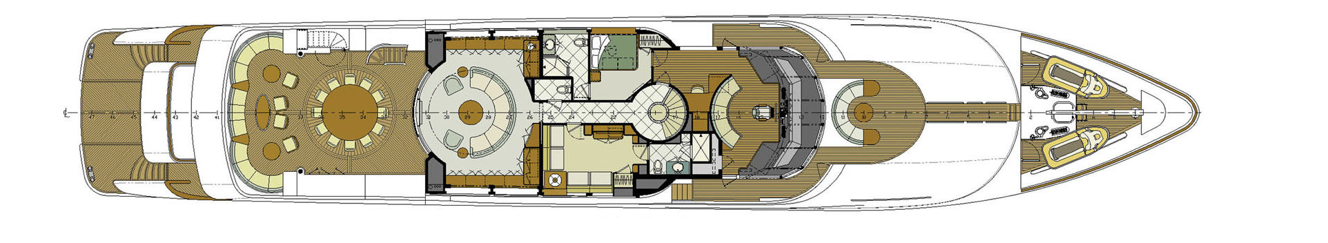 She features a modern open plan layout with large exterior common areas and has received a major refit in 2010 at DERECKTOR shipyard, Fort Lauderdale Florida. She can accommodate up to 12 guests in 6 cabins.